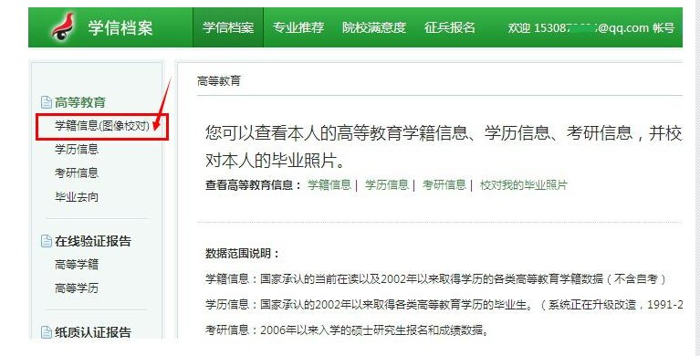 (1)登录“中国高等教育学生信息网”的学信档案页面,网址:http://my.chsi.com.cn,打开如图1所示操作界面:
